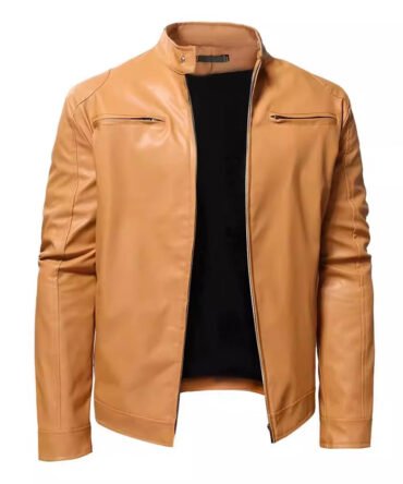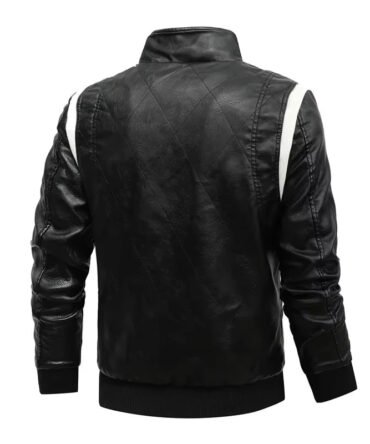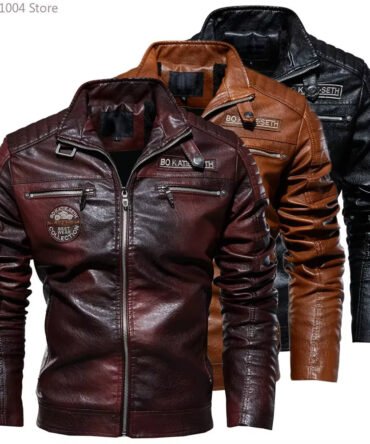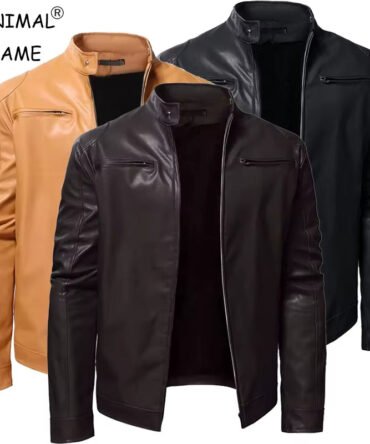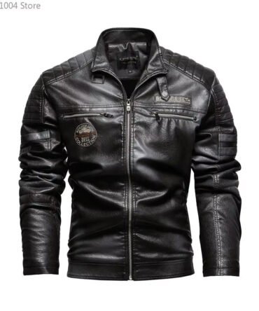 Autumn Mens Stand Collar Jacket Coat Black Leather Motorcycle Jacket Solid Color Zipper Streetwear Winter Warm Biker Jacket Men