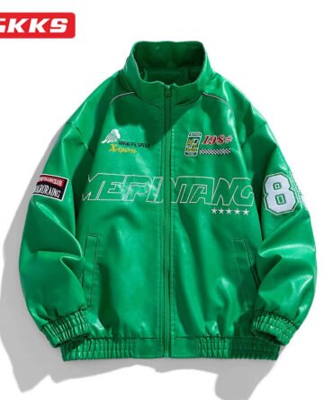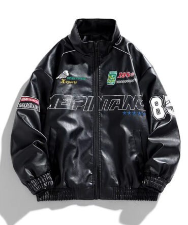 Streetwear Jacket Y2K Mens Hip Hop Cartoon Letter Embroidered Leather Retro Jacket Motorcycle Wear Baseball Jacket Zipper Coats