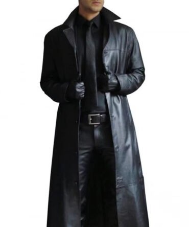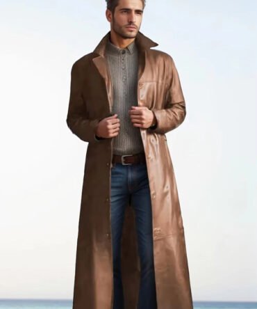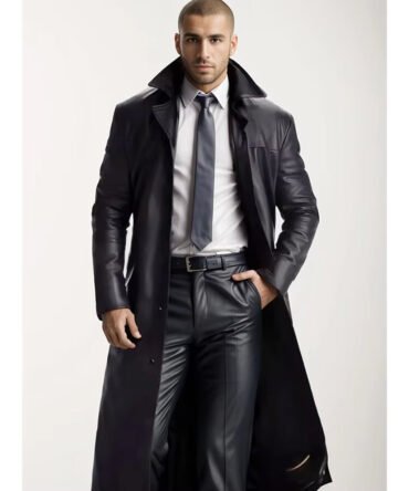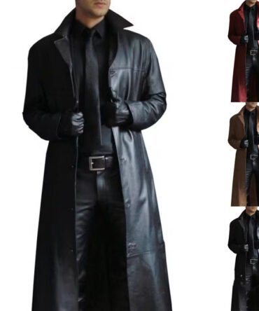 2024 Men Faux Leather Trench Fashion Long Sleeve Autumn Windbreaker Coat Slim Leather Long Leather Jacket Men’S Jacket Outwear