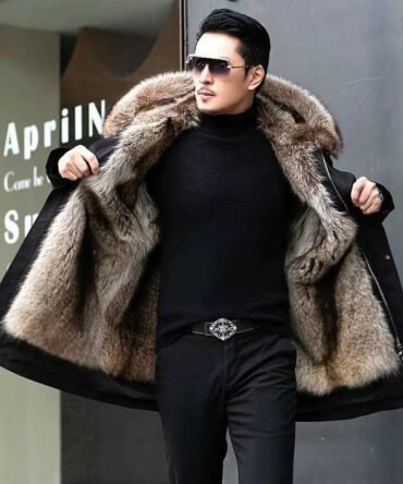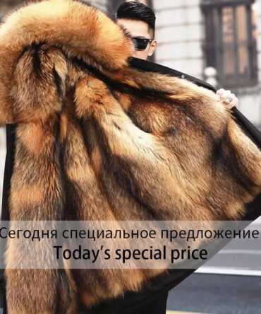 Parker Men’S Imitation Fur Liner Winter Warm New Fur One-Piece Coat Imitation Mink Fleece Mid-Length Fur Coat
