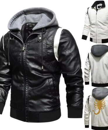 2024 Autumn and Winter Men’S Fashion Zippered Slim-Fit PU Leather Multi-Color Hooded Jacket Coat in Europe and America.