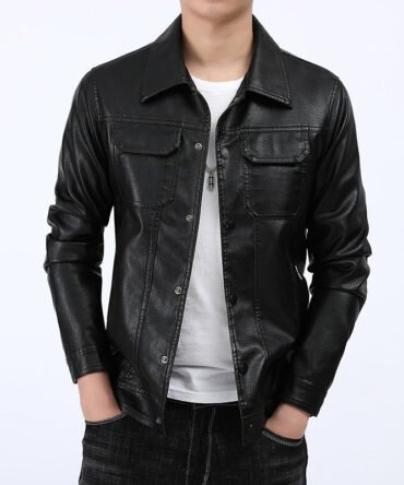 Autumn New Men’S Fashionable Solid Color Leather Jacket Extended Men’S Leather Jacket