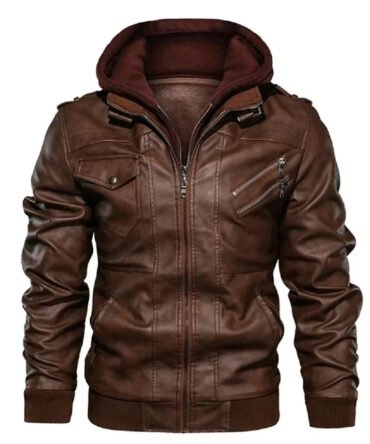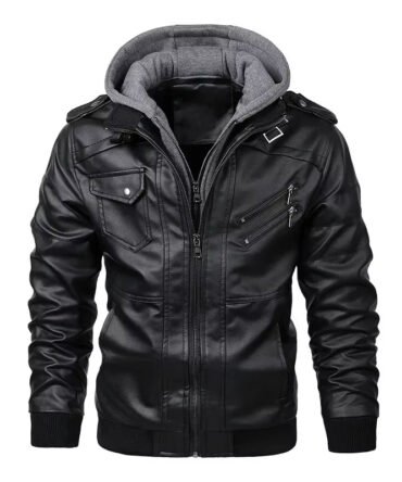 2024 Autumn and Winter Men’S Fashion Zippered Slim-Fit PU Leather Multi-Color Hooded Jacket Coat in Europe and America.