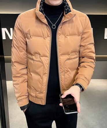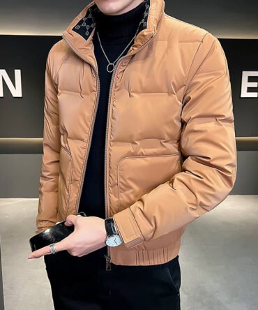 Autumn Winter Men’S Stand Collar Diamond Quilted Jacket Fleece Lined Thermal Padded Jackets Winter Full Zipper Bomber Outwear