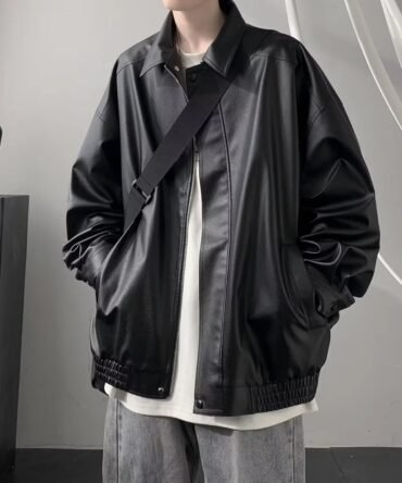 Autumn New Men’S Fashionable Solid Color Leather Jacket Extended Men’S Leather Jacket