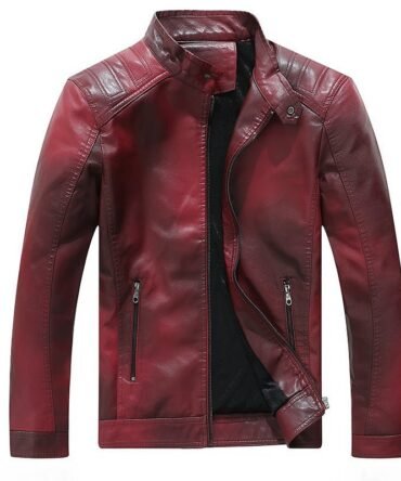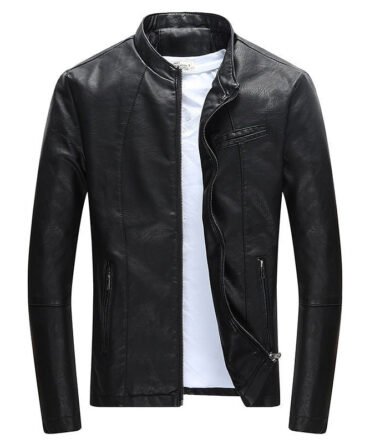 Men’s Plush Leather Jacket | Stand Collar | M2K Trends