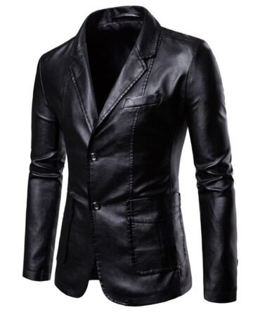 Men’s Slim Lapel All-match PU Small Suit Men’s Lapel Leather Suit Leather Jacket