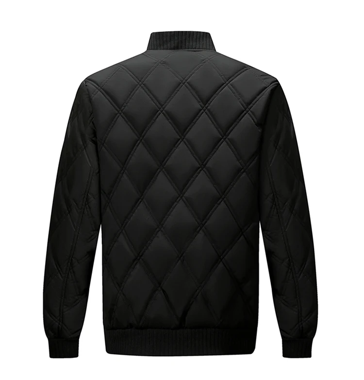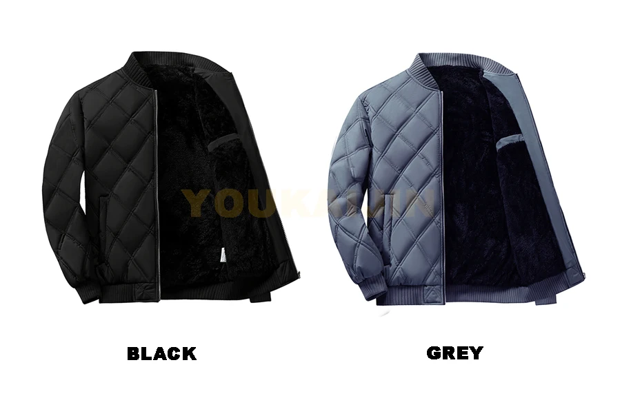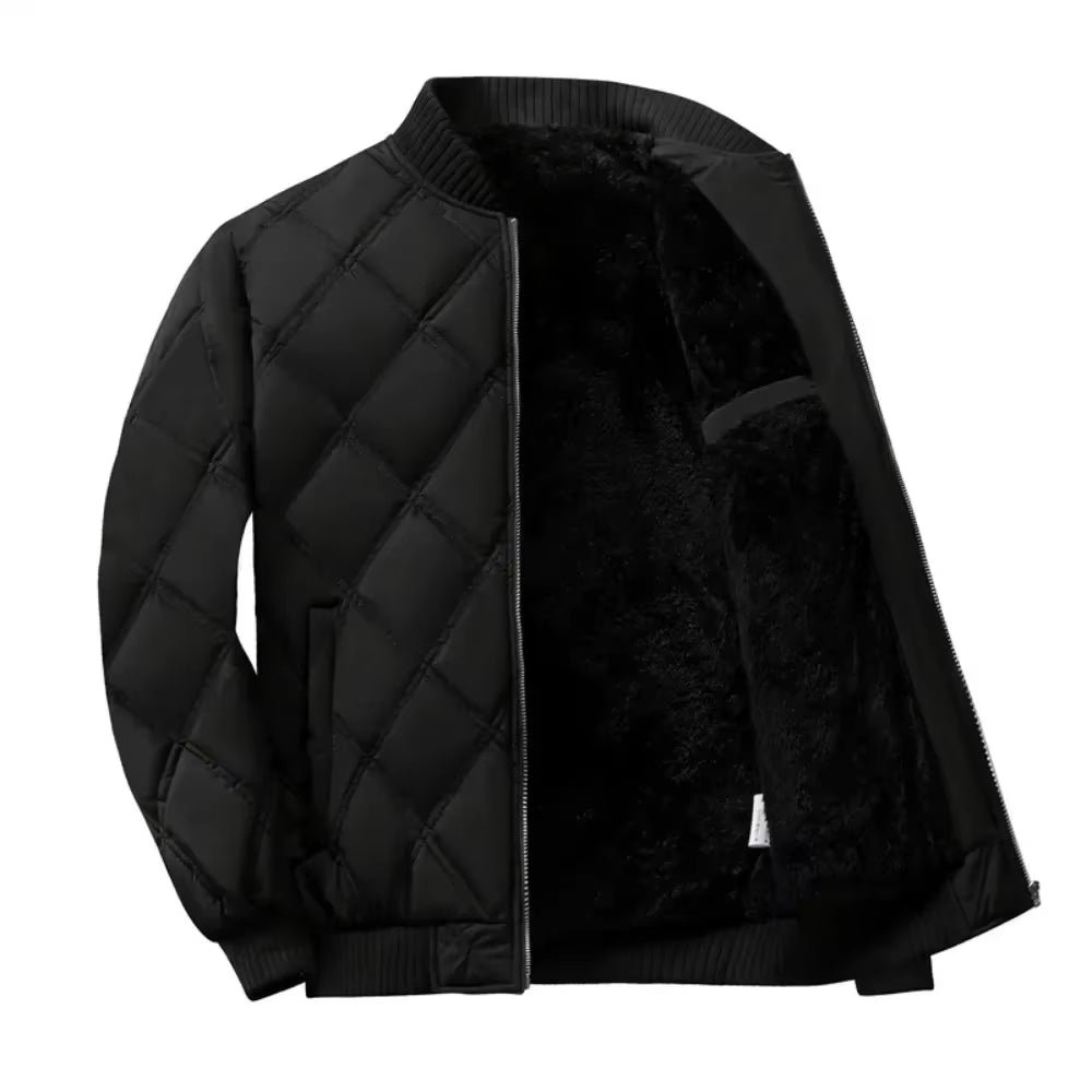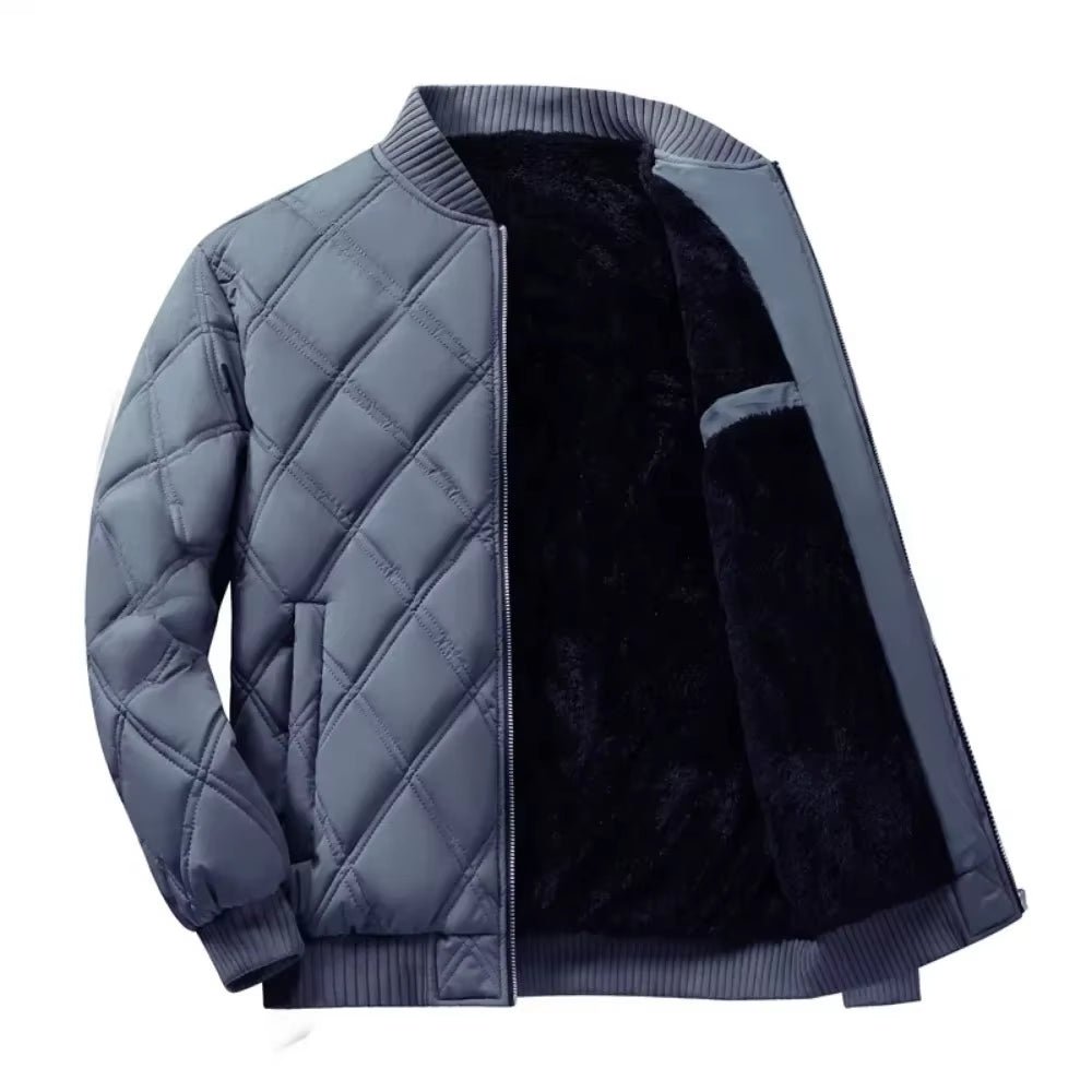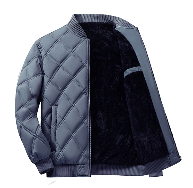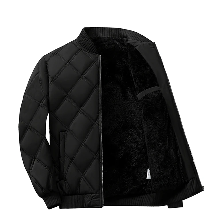 Autumn Winter Men’S Stand Collar Diamond Quilted Jacket Fleece Lined Thermal Padded Jackets Winter Full Zipper Bomber Outwear