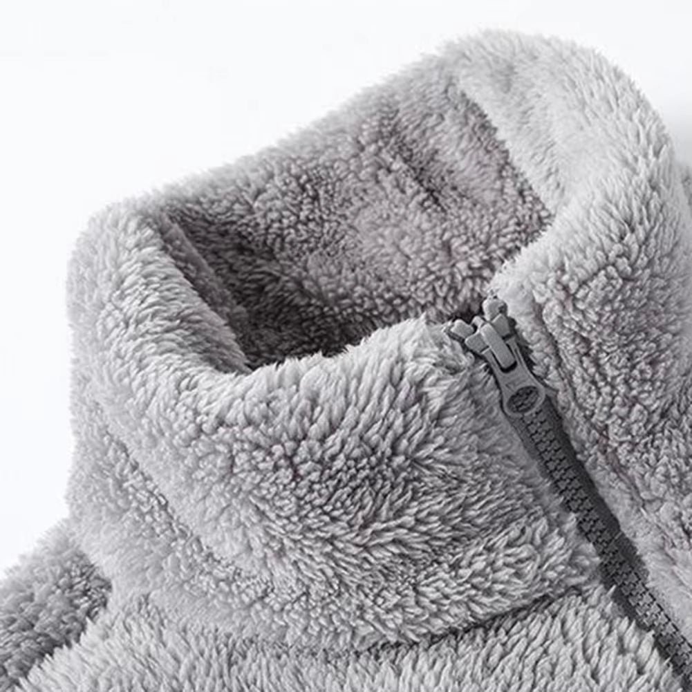 The stand-up collar provides extra warmth for your neck, while the zipper closure ensures easy on and off. With its relaxed fit, this plush coat offers a comfortable and casual style that can be easily paired with various tops and trousers.