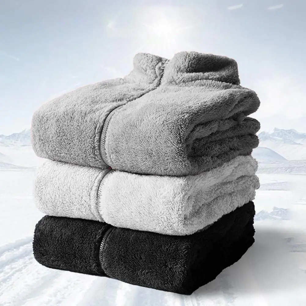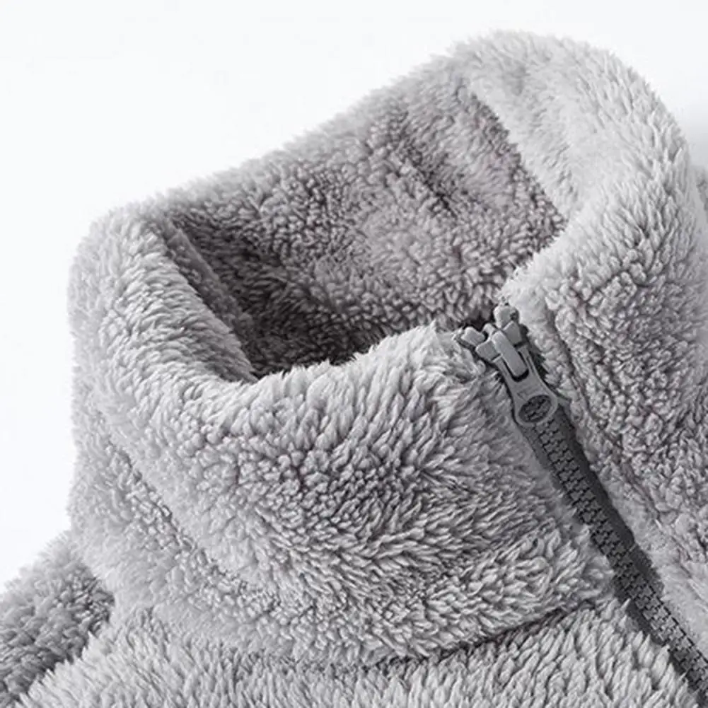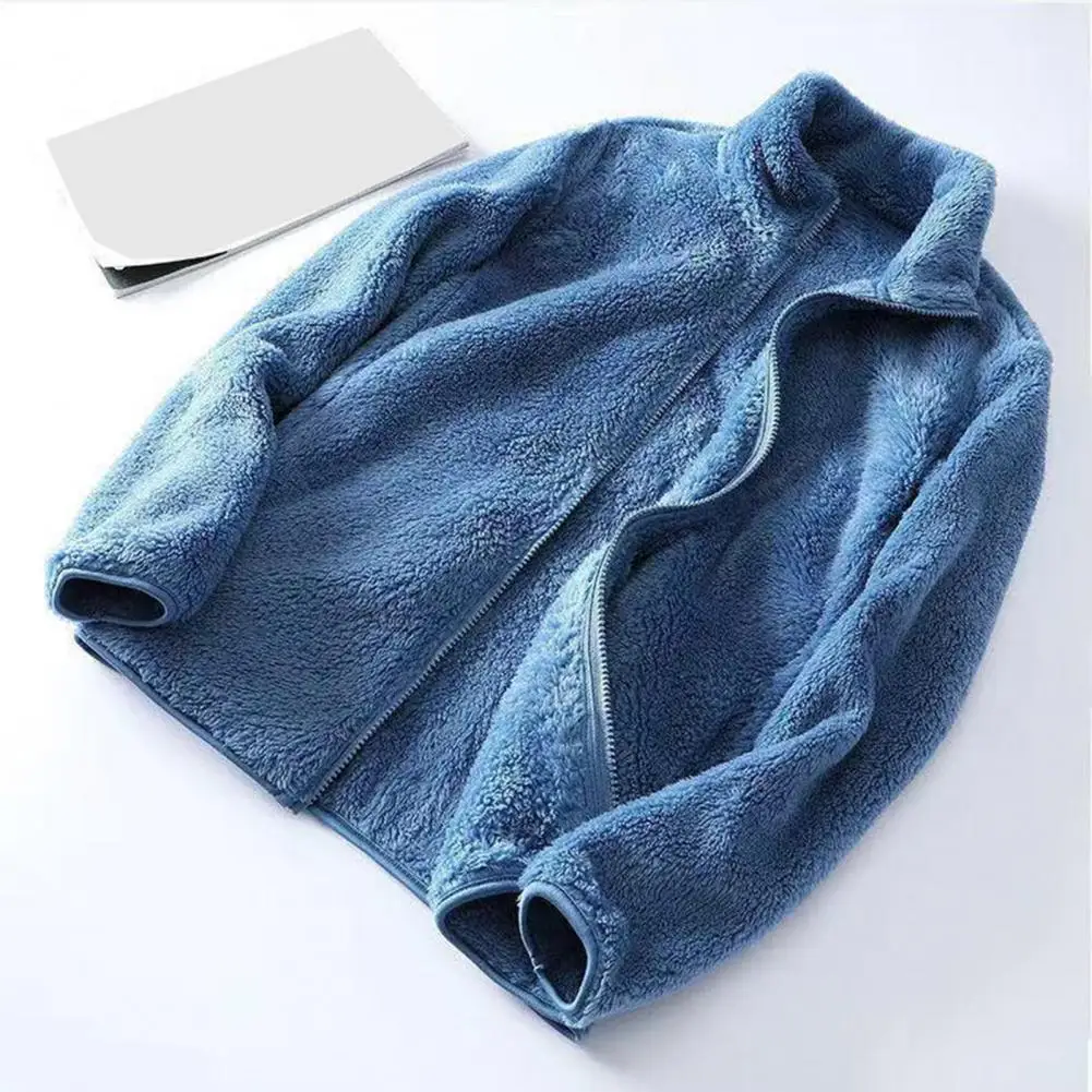 Autumn Winter Women Men Solid Color Plush Coat Stand Collar Long Sleeve Zipper Placket Double-sided Thickened Faux Fur Jacket Coat Streetwear