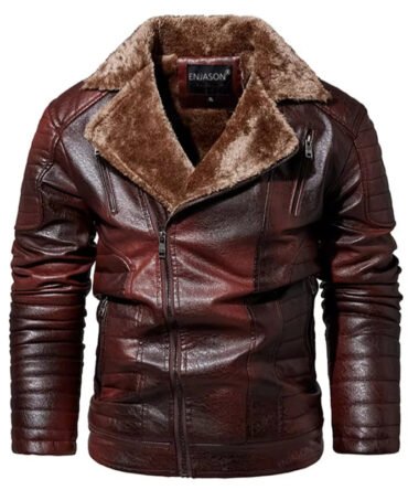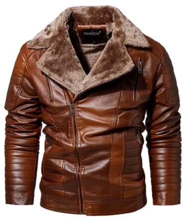 Fashion Warm Winter Men’S Leather Jacket with Fur Collar Thicken Fleece Motorcycle Coat Casual Faux Leather Locomotive Jacket