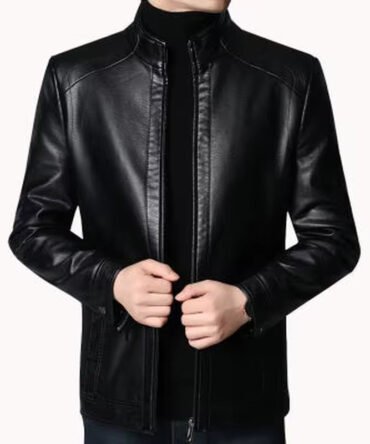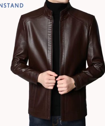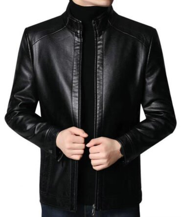 Men Faux Leather Jacket Men’S Faux Leather Motorcycle Jacket with Stand Collar Thick Warm Lining Windproof Design for Autumn