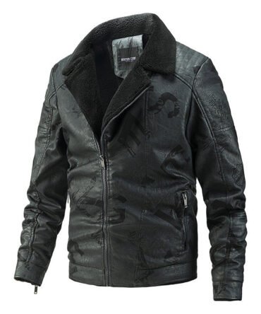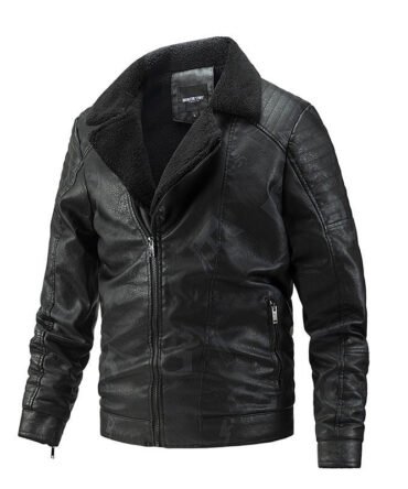 Fall Winter Lapel Men’s Plus Velvet Motorcycle Leather Jacket